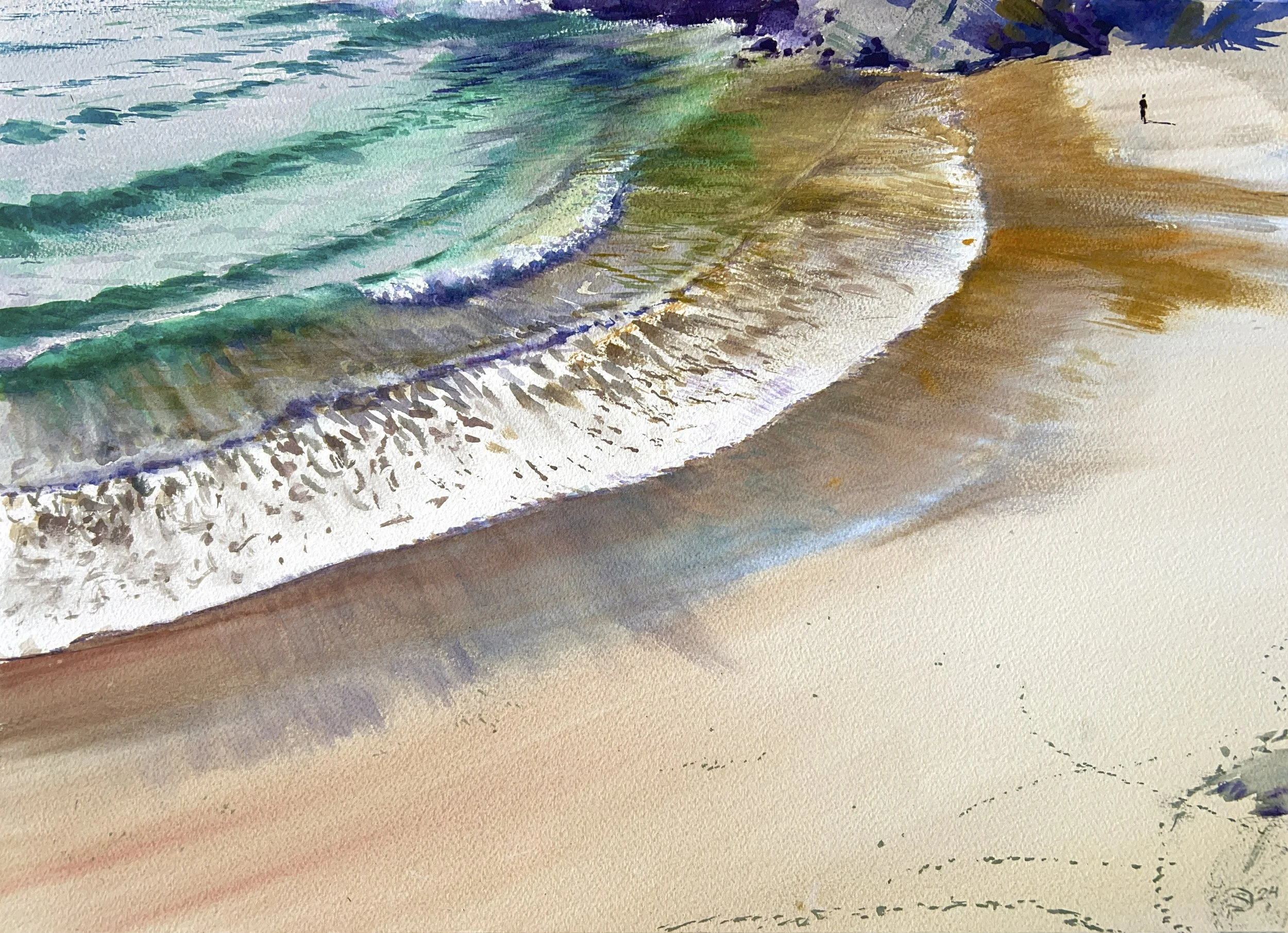 Original Plein Air Watercolor Painting, “Plein Air, 3-3:50pm, Cook’s Beach, 9.17.24”. watercolor, 18 x 24”, 2024